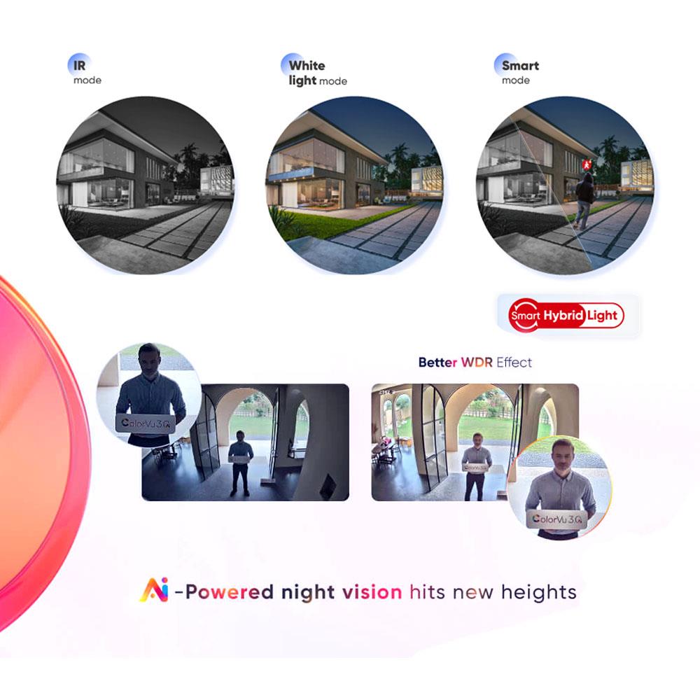 - Smart Hybrid Light: Integrates IR and White lights, 3 supplemental lighting modes